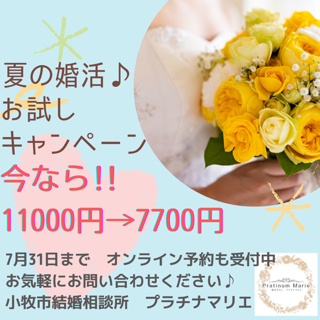 プラチナマリエではそんな暑い夏の婚活応援キャンペーンを実践します♪